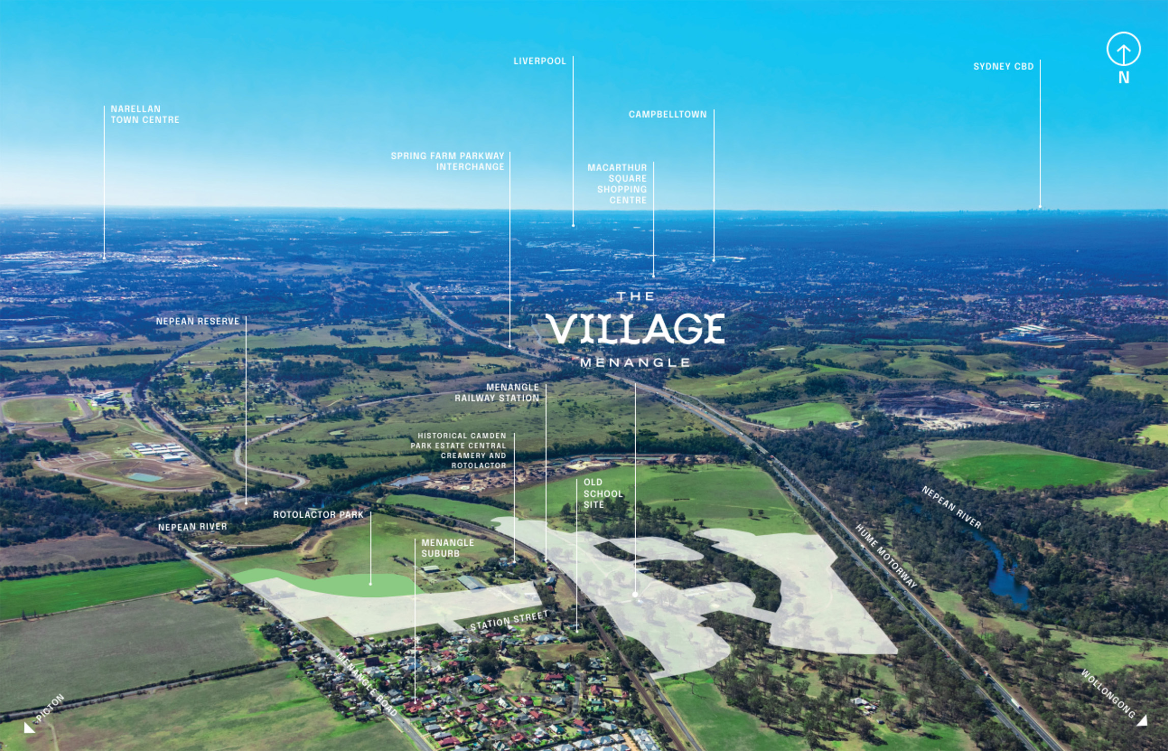 A bird's eye view of the Macarthur region reveals the seamless connection of The Village to the historic township of Menangle, bordered by farmland and the Nepean River, with the Hume Motorway just close enough to make commuting a breeze.